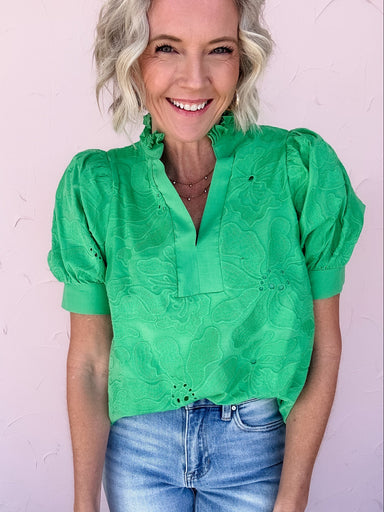 Light, airy, and effortlessly polished—this top brings a fresh feel to everyday dressing. The allover textured pattern adds dimension while the but...