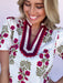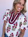 The Bold Intentions Floral Top makes a statement with its striking color combo and intricate neckline detail. The mix of bold magenta and olive on an ivory background gives it that perfect blend of beautiful florals and boutique flair. Pair it with denim or trousers for an effortlessly confident look that stands out from the crowd.