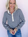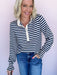 The Call It Cute Henley brings all the charm with its classic navy-and-cream stripes and sweet ruffled trim. The soft knit and relaxed fit make it an easy favorite, while the henley button front and gathered sleeve cuffs give it that playful little twist. Perfect for casual days, coffee dates, and any moment you want to feel cute without even trying.