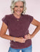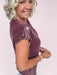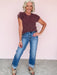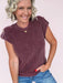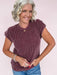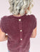 This washed burgundy knit pullover features short sleeves with a button tab detail, ribbed texture, and charming button detail down the back. Perfect for effortlessly bridging the gap between seasons, it’s a versatile addition to your wardrobe.