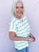 The Rolling Meadow Knit Top feels like a breath of fresh air for your everyday lineup. This lightweight knit features soft wavy green stripes over an ivory base, a classic crew neckline, short sleeves, and the prettiest scalloped hem that gives it that extra little charm. Pair it with denim for errands or dress it up with white jeans for brunch — it’s an easy win all season long!