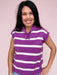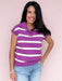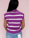 The Violet Current Sweater Top is that bold little pop your closet didn’t know it was missing. Featuring vibrant violet and white horizontal stripes, a ribbed collar with a split neckline, and cap-style sleeves, this soft knit brings just the right mix of playful and polished. Pair it with denim for lunch on the patio or dress it up with white pants for an easy dinner out moment.
