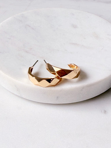 These modern gold hoops bring a fresh twist to a classic favorite. Designed with a faceted finish, they catch the light from every angle for a subt...