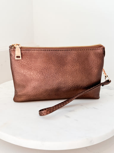Shimmer and shine your way through the season with these metallic mini clutches! Perfectly sized for cards, cash, and gloss, they slip easil...