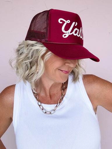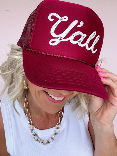 Get ready for game day with the Y'all Script Trucker Hat! Showcasing a fun cursive design in worn white lettering, this hat combines casual charm w...