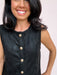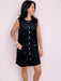 Prime Moment Dress is your go-to for sleek sophistication with its black velvet finish and striking gold button details. The sleeveless cut and subtle A-line shape make it an easy piece to style alone or layered for cooler days. Perfect for dinners, work events, or any moment you want to feel effortlessly polished.