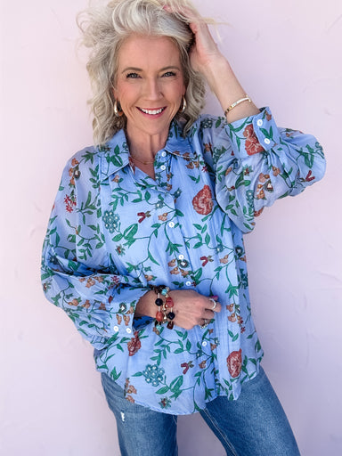 The Daylight Floral Blouse is light, romantic, and effortlessly feminine. Designed with a softly lined body and sheer, billowy sleeves, this blouse...