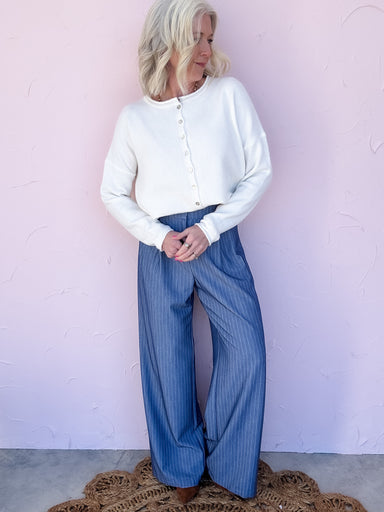 The Mainstay Pinstripe Pants are that perfect balance of polished and easy—tailored enough to elevate your look, but relaxed enough for all...