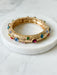 This bangle brings instant joy with its mix of vibrant, multicolored stones set against a textured gold band. The hinge-style design makes it easy to slip on while giving you a bold, statement look without the weight. It’s the perfect pop of color for holiday parties, weekend plans, or anytime your outfit needs a little extra sparkle.