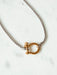 Dual Charm Toggle Necklace features a striking mix of silver and gold links that instantly elevates any neckline. The front-facing toggle clasp is shaped like a modern horseshoe, giving it that perfect blend of edge and elegance. Wear it solo for a sleek statement or layer it with your everyday chains for an effortless, pulled-together look.