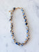 Cool, confident, and a little unexpected — The Sloane Necklace brings modern edge to your classic denim days. A navy-and-ivory printed fabric is woven through chunky gold links, creating the perfect mix of casual and luxe.