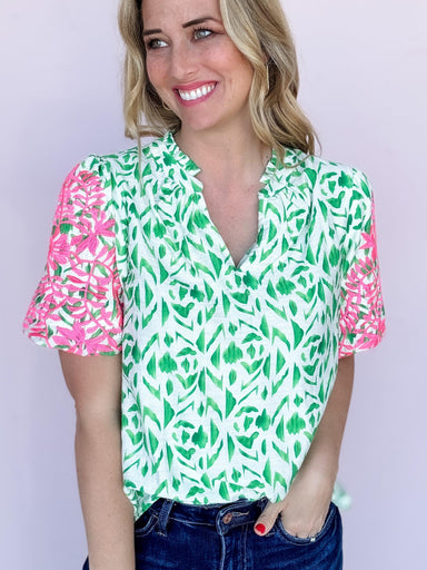 The Paisley Breeze Top brings an effortless elegance with its tone-on-tone design that feels soft, subtle, and elevated. The lightweight fabric dra...