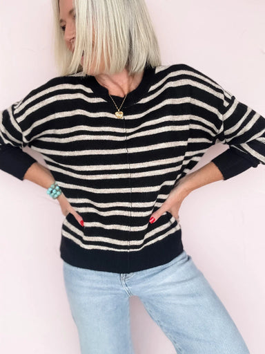 This lightweight cream knit top with playful two-tone rose colored stripes adds a fresh, cheerful vibe to your wardrobe. Featuring a cozy crew neck...