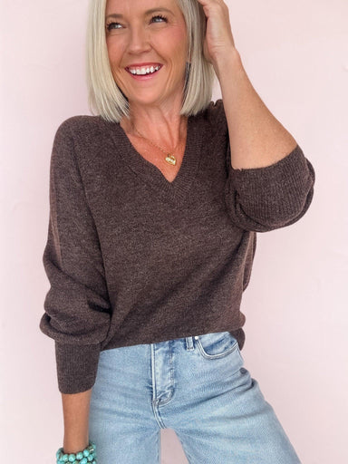 Meet the cozy sweater you're gonna be grabbing over and over this fall! With its flattering V-neckline and relaxed fit, it strikes the perfect bal...
