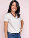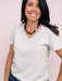 Daylight Dazzle Tee brings a soft, easy drape with just the right touch of sparkle for everyday wear. Scattered rhinestone studs catch the light beautifully, giving this neutral V-neck a polished, feel-good glow. It’s a simple throw-on piece that elevates denim, layers effortlessly, and adds a hint of shine to any casual look.