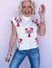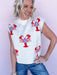 The Lobster Roll Knit Top is giving coastal charm with a playful twist. This soft neutral sweater features bold lobster graphics, a modern mock neckline, and an easy cap sleeve silhouette that makes it perfect for layering or wearing solo. Pair it with white denim for summer trips, beach weekends, or anytime you want a little seaside personality in your everyday look.