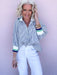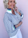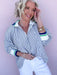 The On the Sidelines Top is sporty-chic with a playful twist. Featuring a zip-front neckline with a bold ribbed collar trimmed in blue and green, this flowy striped blouse brings just the right amount of structure up top with an easy, breezy fit through the body. Style it with denim and sneakers for game day, school events, or a casual Saturday when you still want to look put together.