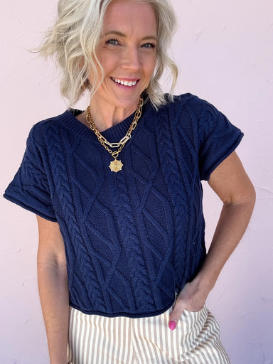 This cropped knit sweater is all about effortless style with just the right amount of texture. Designed with a clean, modern silhouette, the cable-...