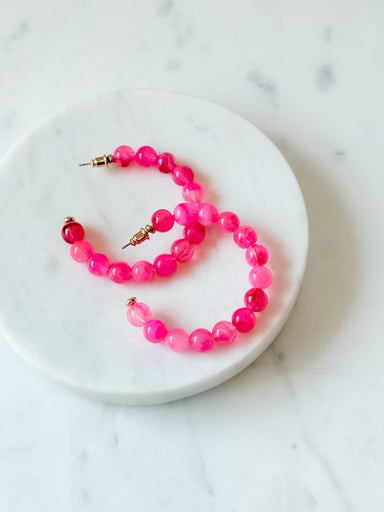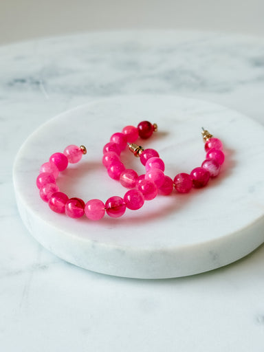 The Candy Crush Hoop Earrings bring a playful pop of color to any look. Designed with vibrant pink beading and a classic hoop shape, these earrings...