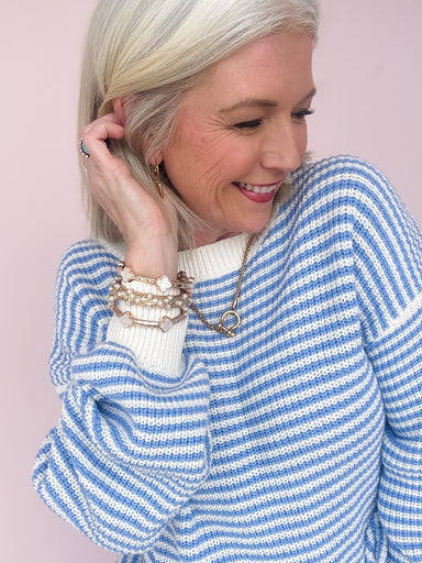 Embrace cozy vibes with the Good For You Top, featuring a heathered cream base accented by playful burgundy stripes. Its soft, stretchy fabric move...
