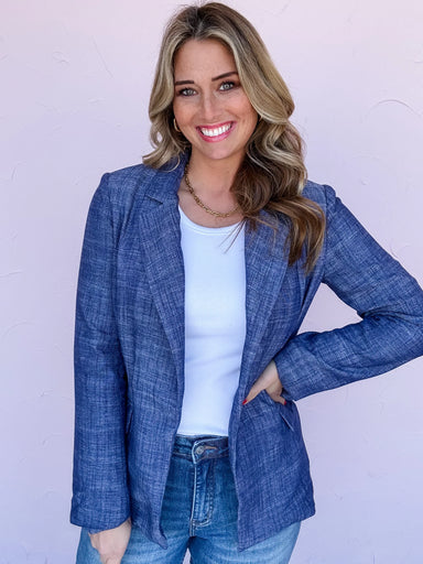 An effortless layer that brings polish without feeling stiff. This chambray-inspired blazer has a clean, tailored look with an easy drape that work...