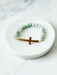 An absolutely beautiful bracelet! Semi-precious stones with a hammered cross in the center. Available in Amazonite stones, this bracelet looks great worn alone or stacked with other bracelets! This bracelet makes a great gift!