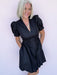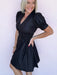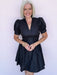 Step out in style with the Break Free Mini Dress, featuring a flattering v-neckline and a playful zipper front. The wide smocked elastic waistband adds comfort and shape, while short puff sleeves bring a fun, flirty vibe. Perfect for game day cheers or cozy fall adventures, this black mini dress lets you move freely and look fabulous all season long.