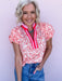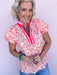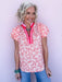 The Citrus Daydream Top is a cheerful statement piece that instantly brightens your look. Made from lightweight cotton, it features a lively floral print, contrast gingham trim at the neckline, and softly puffed sleeves for a playful yet polished feel. Perfect for sunny days, this top pairs easily with denim or white bottoms for brunch, errands, or weekend plans.