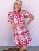 The Sunday in Siena Dress feels like a slow stroll through cobblestone streets with nowhere to be. This soft cotton beauty features a romantic red and pink floral print, puff sleeves, a split V-neck with layered pink contrast trim, and tiered detailing that gives it that effortless shape. Pair it with sandals for brunch on main street or dress it up with wedges for showers and special gatherings.