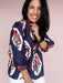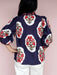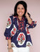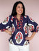 A lightweight cotton popover top featuring an allover floral print and contrast trim at the neckline and cuffs. Designed with a relaxed fit and adjustable tie-front detail for easy, everyday wear. Comfortable, breathable, and perfect with denim or casual bottoms.