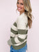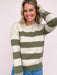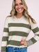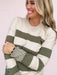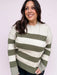 The Olive Horizon Stripe Sweater brings a clean, modern feel with its bold olive and cream bands and minimal, polished silhouette. The rib-trimmed neckline and cuffs add subtle texture while keeping the look effortless and elevated. Soft, cozy, and easy to style, it’s the kind of everyday favorite that works from laid-back lounging to out-and-about days.