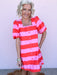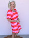 Meet your new feel-good favorite with this vintage-inspired striped dress. Brings bold color, effortless charm and that easy Texas confidence we're known for. Featuring a flattering square neckline, fabric covered buttons and relaxed puff sleeves. It's the kind of piece that turns weekend outings into compliments.