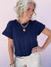 • Julie is 5'4", a size 2, and wearing a small