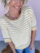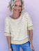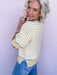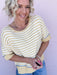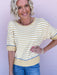 The Sunny Side Stripe Sweater brings a cheerful touch to your everyday knit lineup. Designed with soft yellow and white stripes, this lightweight cotton sweater features a relaxed fit, wide crew neckline, and ribbed trim for an easy, wearable feel. It’s perfect for layering on breezy days or wearing solo with denim when you want something cozy but bright.