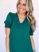 This rich green top adds an instant touch of freshness to your wardrobe with its vibrant color and softly textured fabric. The ruffled V-neckline and smocked puff sleeves give it a feminine, flattering shape that’s easy to dress up or down. Lightweight and effortless, it’s the perfect feel-good piece for everything from holiday gatherings to everyday errands.