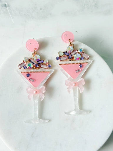 Go for the glam! These earrings add instant glam to your style. These stunning acrylic martini glasses are adorned with sparkling jewels for a touc...