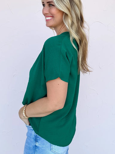 Bring playful charm to your wardrobe with the Madeline Classic Top. In a rich hunter green, this lightweight pullover features a flattering V-neck ...