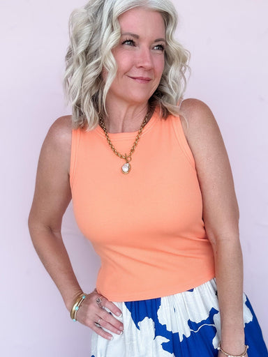 FINAL SALE: NO REFUNDS/ EXCHANGES Introducing the Evie Tank, a beautiful and bright creamsicle orange cropped tank that is sure to elevate your...