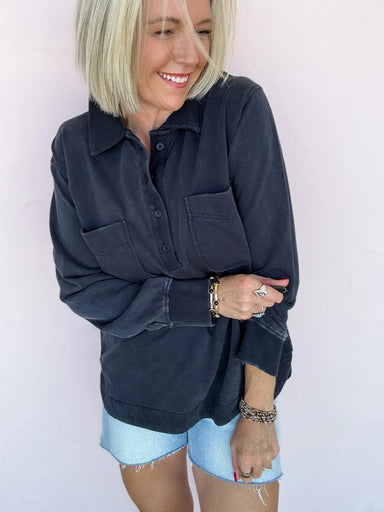 Stay cozy and cool in the For The Record Pullover, where mineral washed black meets deep navy undertones for a look as unique as you are. With a ha...