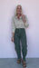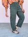 Step out in style with these washed green, high-rise jeans that bring a fresh twist to your wardrobe. Featuring trendy barrel legs and handy cargo-style pockets, they combine fashion with a playful edge and practical flair. Perfect for those who love to mix comfort with a bold, on-trend look.