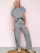 Wrap yourself in everyday comfort with the Brightside Lounge Set. This super soft gray duo features a relaxed fit short sleeve top with charming ribbed cuffs and collar, paired with elastic waistband pants that include handy side pockets. Perfectly designed for lounging, school pick-ups, or running errands, it brings cozy style to all your casual moments.