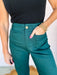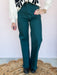 Easton Evergreen Pants bring a bold pop of color to your wardrobe with their rich forest green wash and flattering high-rise fit. The wide-leg silhouette and raw fringe hem give them that cool, modern twist while still feeling easy to wear for everyday outings. Pair them with a chunky sweater or a simple tee—these pants instantly elevate any look.