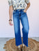 Elevate your denim game with our Harborline Wide Leg Denim! The high rise and wide leg design creates a flattering silhouette while the slightly cropped length and raw cut hem add a touch of edge. With a medium dark wash, these jeans are perfect for winter and spring. Upgrade your wardrobe and make a statement with these must-have jeans!