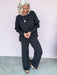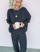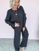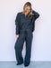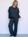 The Quiet Hour Lounge Set is made for slow mornings and relaxed evenings. Crafted from soft and thick waffle knit in a charcoal navy hue, it offers an easy, draped fit with wide-leg pants and a comfy drawstring waist. Whether you’re lounging at home or grabbing coffee to go, this set brings comfort and polish to your downtime.