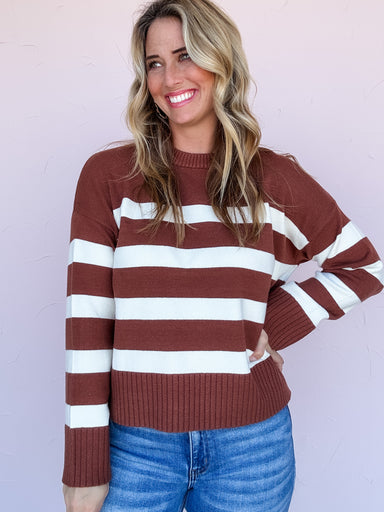 The Day by Day Sweater is the definition of easy comfort with classic charm. Its chestnut and cream stripes feel warm and timeless, while the ribbe...