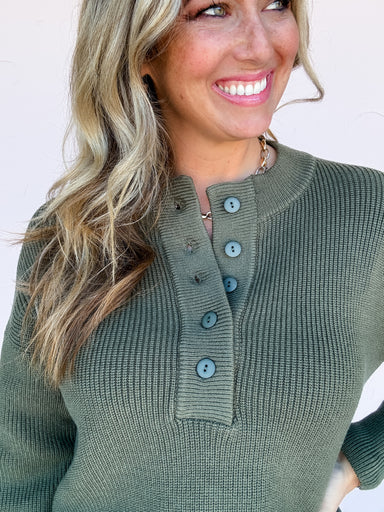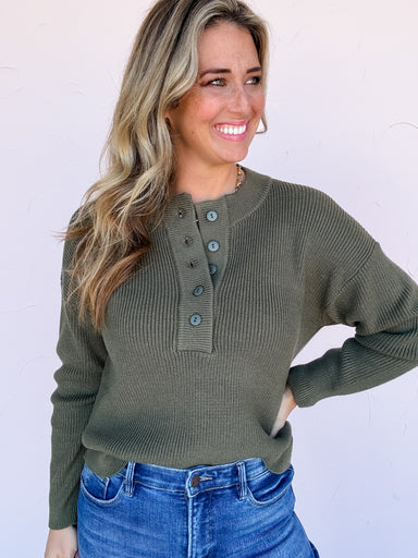 The Simple Theory Sweater brings clean lines and easy confidence to your everyday style. Featuring a ribbed knit texture, button-front henley neckl...