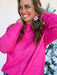 Bring a pop of joy to chilly days with the Berry Bright Sweater. Its vibrant fuchsia hue and cozy knit texture make it the perfect mood-lifting layer for winter outings or weekends in. Finished with raglan-style sleeves and a subtle center seam detail, this one’s effortlessly chic with denim or dressed up with a fun skirt.