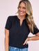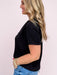 Our best selling Taylor V-Neck Top is a great staple piece for your wardrobe! This short sleeve, v-neck placket top features a gathered detail at the shoulders and lightweight fabric with a subtle texture. Super cute paired with jeans, this classic black color is perfect for any season!
