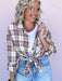 The Beyond the Ridge Button Down brings timeless charm with its classic plaid pattern in warm camel, soft light blue, and crisp ivory. This versatile shirt is your go-to for layering or wearing solo, adding a cozy touch to any outfit. Perfect for embracing the season’s spirit, it effortlessly blends comfort and style for everyday adventures.