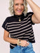 The Evening Sail Sweater Top brings a soft, feminine touch to classic stripes with its pretty taupe-and-black palette and easy, modern shape. The ribbed knit adds texture without bulk, making it an effortless piece for everyday wear. Lightweight, comfy, and polished all at once — this top glides right into your weekly rotation!